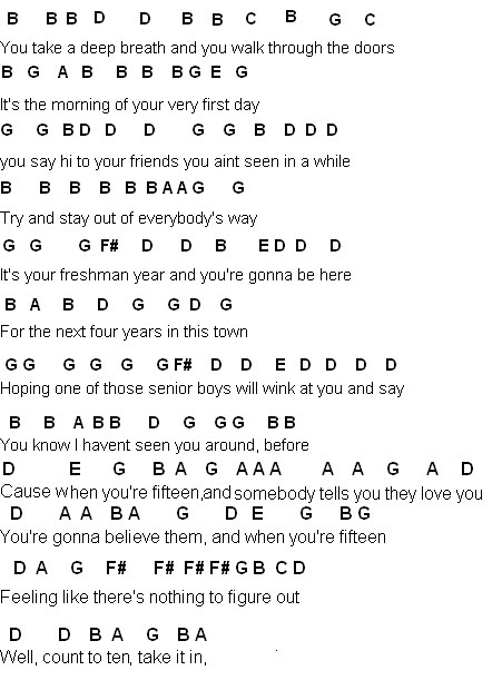 Fifteen Sheet Music Taylor Swift Guitar Tab Single Guitar