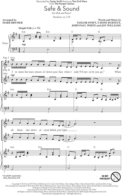 Taylor Swift Safe Sound Feat The Civil Wars Sheet Music Notes