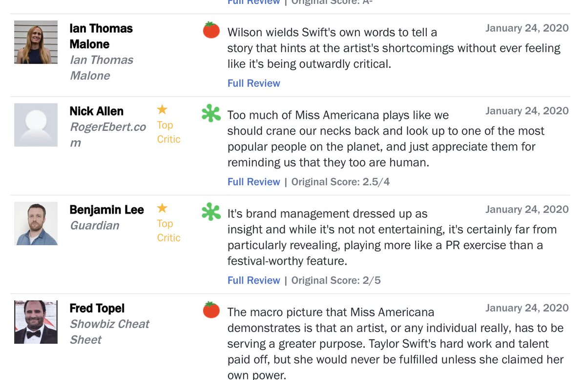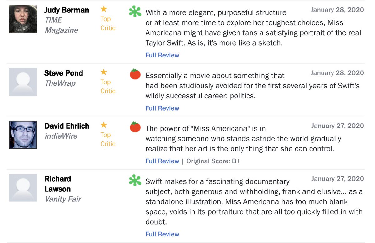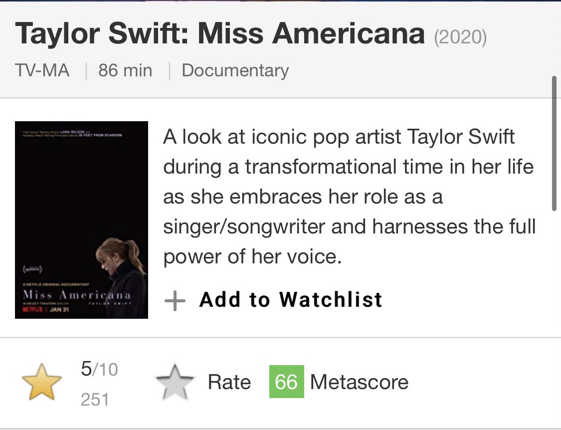 Captivating taylor swift documentary is tailor made for fans but leaves a few blank spaces view all. Critic reviews for miss americana. The singer emerges as charming and undeniably talented in this netflix documentary but.