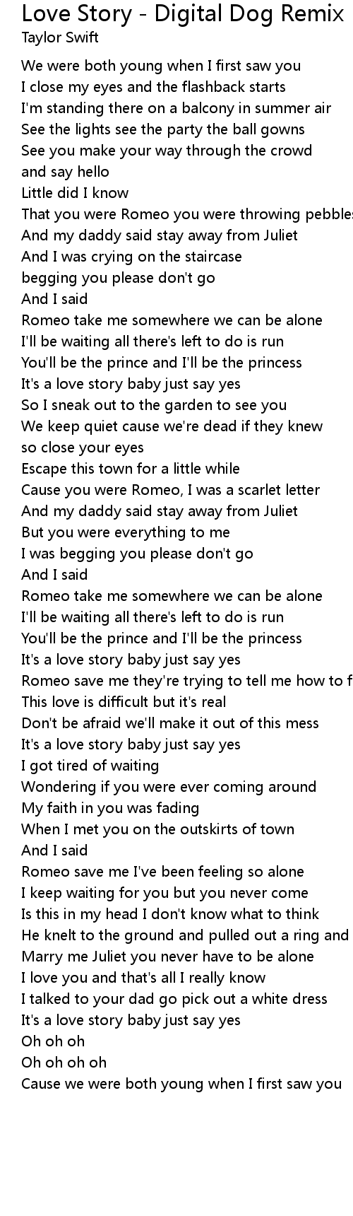 Taylor Swift Love Story Digital Dog Remix Lyrics Genius Lyrics genius.com