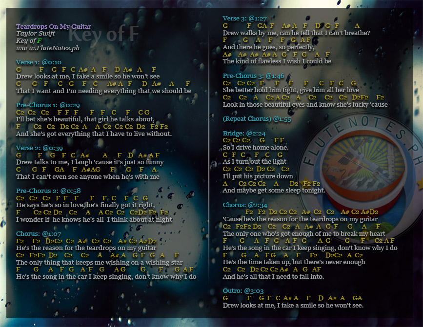 Teardrops On My Guitar Taylor Swift Guitar Chord Chart Bass